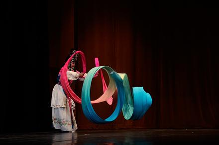 而具體到動作上,舞蹈中常用的“字”是出、收、揚、沖、搭、繞、撇。其關鍵是“氣帶腰,腰帶肘,肘帶腕,腕帶指”。