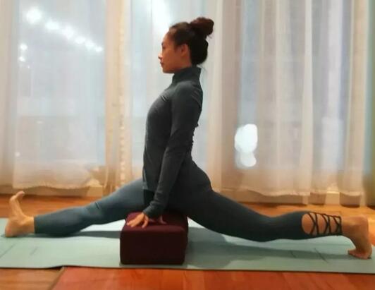 (1)如果你身體打開程度更多,可選擇坐在瑜伽磚上