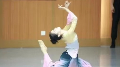 在表現“思念”這一主題時,舞者的處理堪稱精妙。她沒有采用常見的“托腮凝望”式抒情,而是讓整個身體蜷縮成一個緊實的球體,雙臂如藤蔓般纏繞住自己的膝蓋。突然,頸部像被無形的手猛地向上提拉,頭顱以一種近乎痙攣的姿態揚起,眼神卻虛焦在某個不存在的遠方。這個動作的張力在于:身體的收縮與頭部的爆發性揚起形成強烈反差,仿佛內心的思念突然沖破了軀殼的牢籠,卻又在瞬間被現實的重力拉回。那些在胸腔里反復碾壓的話語,最終都化作了指尖的顫動——當舞者緩緩伸展手臂時,指尖的抖動頻率隨著呼吸逐漸加快,如同春寒中顫動的山楂花瓣,脆弱卻又執著地舒展著生命的姿態。