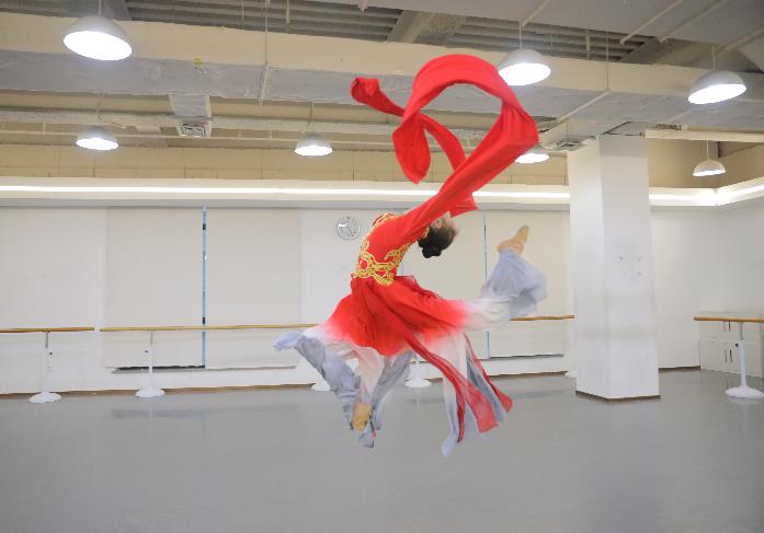 5.跳躍:跳躍是中國舞中常見的動作之一。跳躍是指舞者用雙腿騰空起跳,展示舞姿和舞蹈技巧。跳躍可以是直線跳躍,也可以是旋轉跳躍。跳躍要求舞者具備良好的爆發力和協調性,能夠準確地控制身體的起跳和著地。