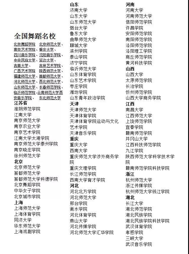當然不是了!在此給各位家長和同學,以及對舞蹈感興趣的愛好者普及一下“舞蹈能考的大學”。