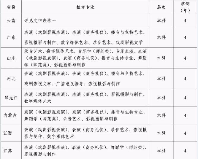注:校考省份及專業以各省招生考試院最終公布為準。