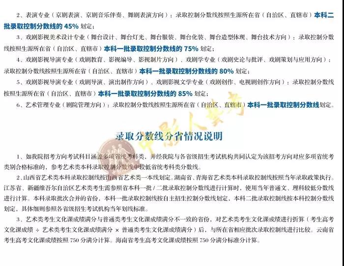 藝術(shù)類考生文化課成績滿分與普通類考生文化課成績滿分不一致的省份,對藝術(shù)類考生文化課成績進行折算(考生高考文化課成績÷藝術(shù)類考生文化課成績滿分×普通類考生文化成績滿分)后,與所在省相應(yīng)批次錄取控制線進行比較。云南省考生高考文化課成績按照750分滿分計算。海南省考生高考文化課成績按照750分滿分標準分計算。