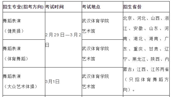 (二)報考舞蹈學專業的考生必須參加生源地(省、區、市,下同)省級統考(聯考),武漢體育學院不單獨組織專業測試,統考(聯考)合格者均可報考武漢體育學院。