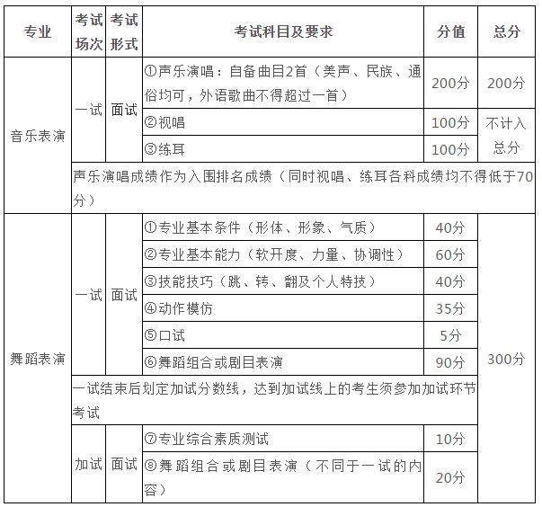 3.若生源省份組織有藝術類專業省級統考的,報考音樂表演、舞蹈表演專業的考生須參加所在省份的相應專業類別的省級統考并達到本科合格要求。