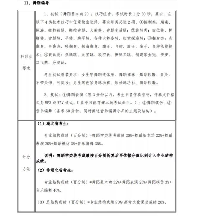 武漢音樂學院藝術類舞蹈專業??即缶V