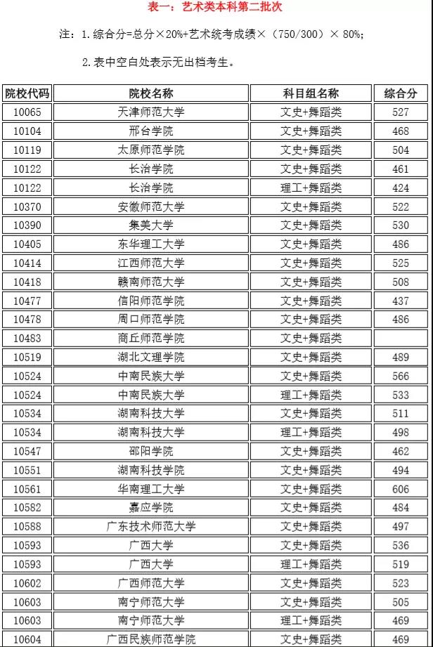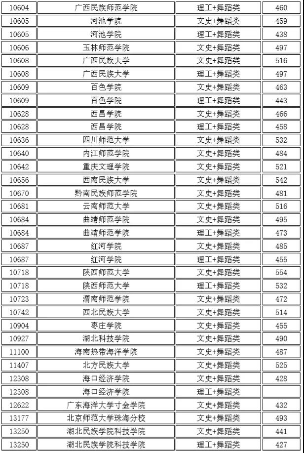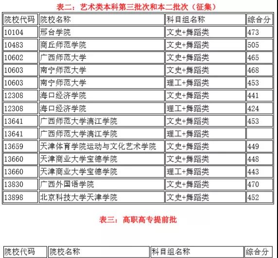廣西舞蹈類本二批次、高職專科批次及征集志愿名單,部分單招院校不計在內(nèi)。