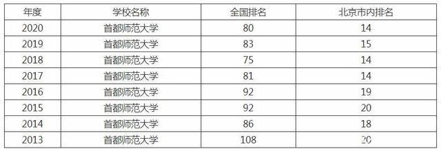 首都師范大學全國排名: