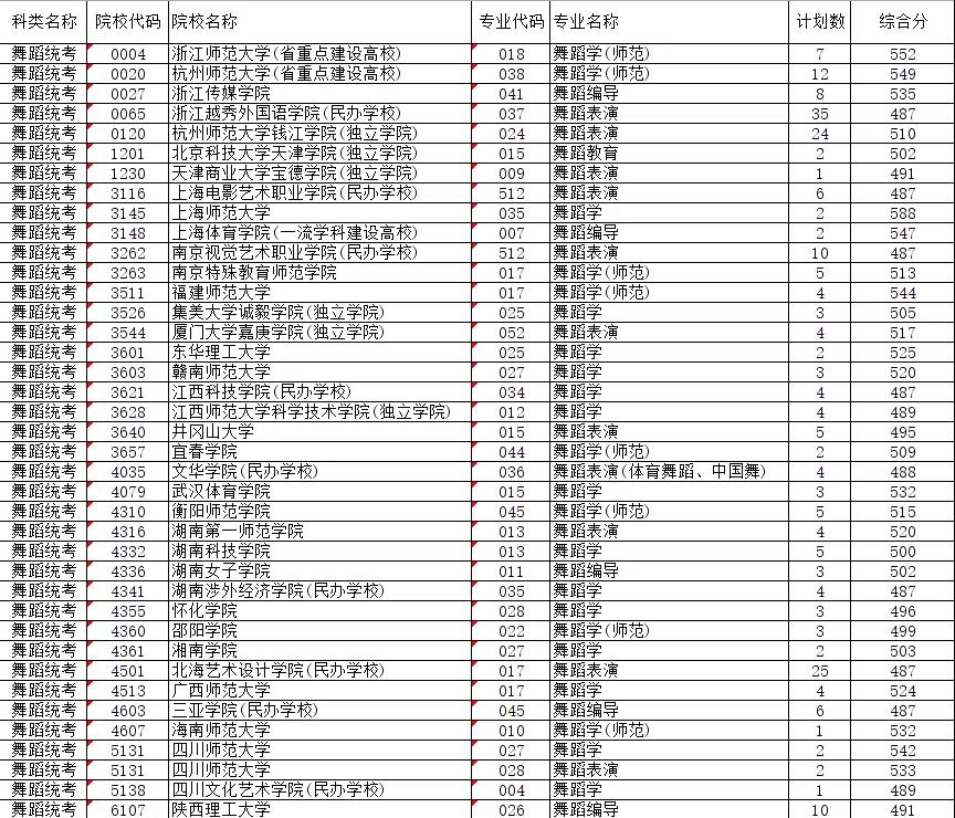 2020年浙江省舞蹈統(tǒng)考本科文化線一段487分,二段432分