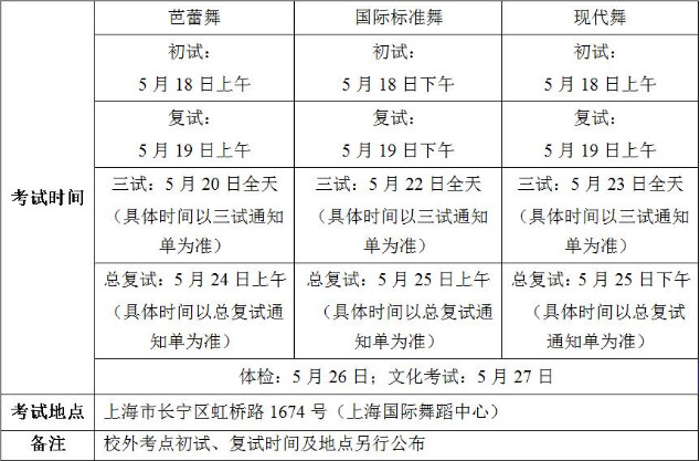 專業考試時(包括節目表演),考生著吊帶或背心式練功衣,不得散發,不得化妝。節目音樂(U盤或CD,內只存一首音樂)、道具、文化考試用品自備。