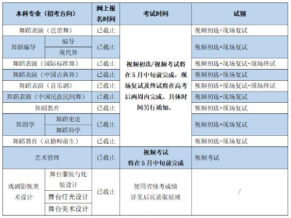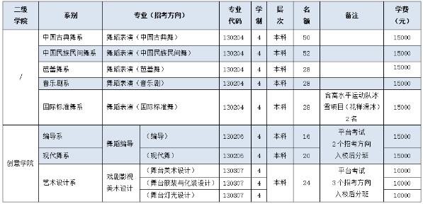注:2020年北京舞蹈學院開始面向全國招收高水平運動隊冰雪項目,具體相關事項見《北京舞蹈學院2020年高水平運動隊招生簡章》
